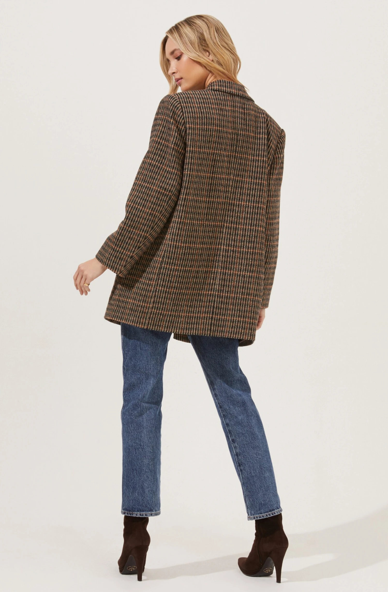 Autumn calls for new silhouettes. This blazer features an oversized fit with a notched collar and buttoned front. Long sleeves. Flap pockets.