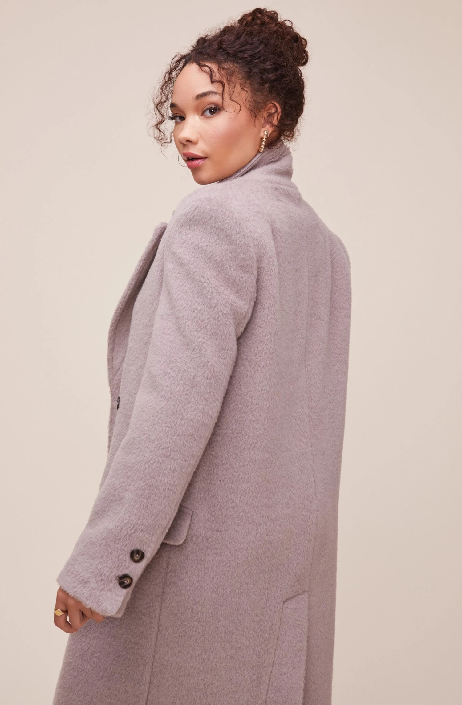 Sleek and sophisticated, the Blair coat accentuates your outfit while keeping you warm! It features a notched lapel that descends to a double breasted front. Flap pockets on the side. Long sleeves. Vented hem.