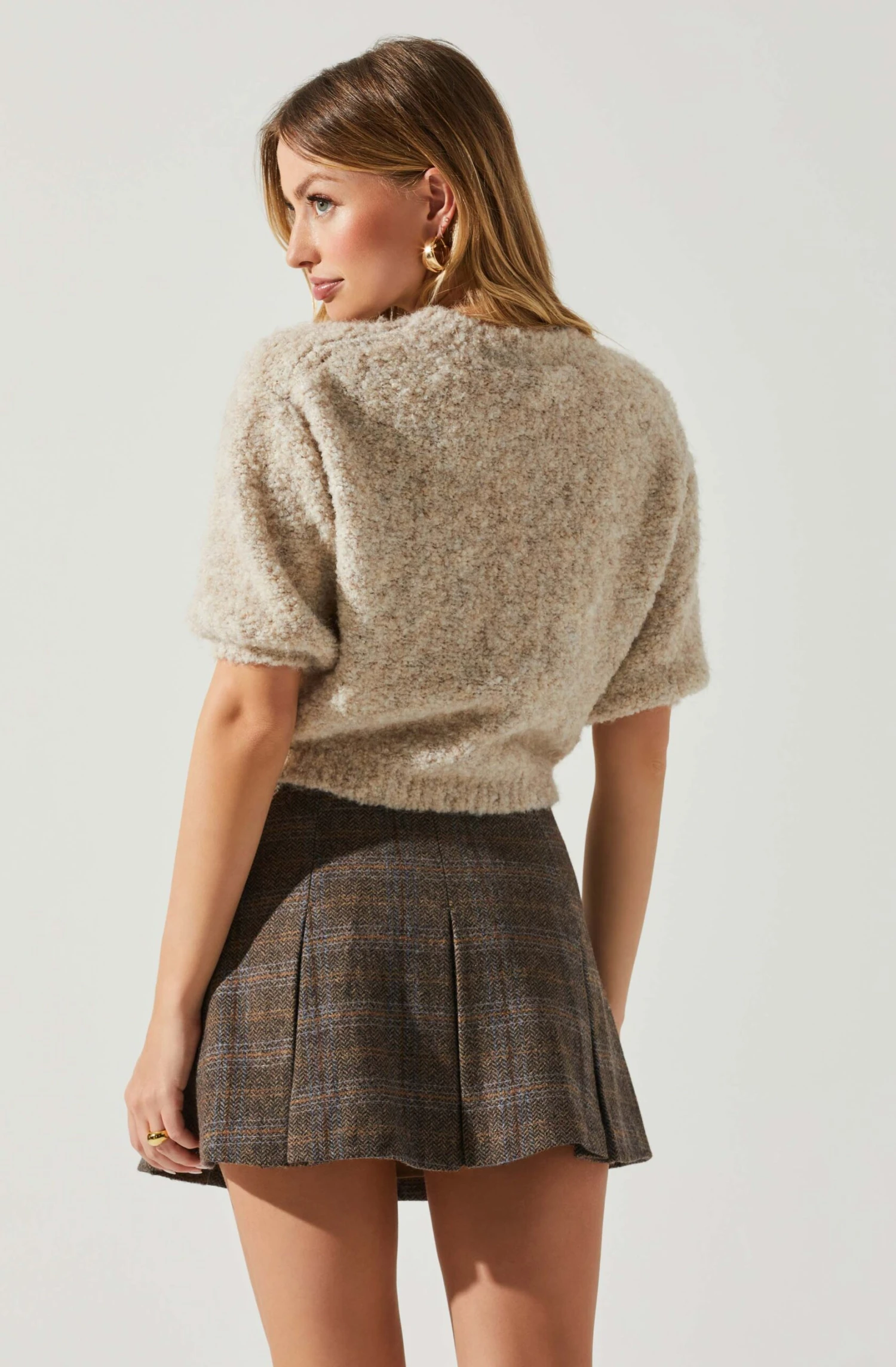 A softly textured knit adds tactile appeal to our Collette Sweater, designed with short puffed sleeves as a feminine accent. Pairs perfectly with a skirt and tall boots for a chic fall style statement.