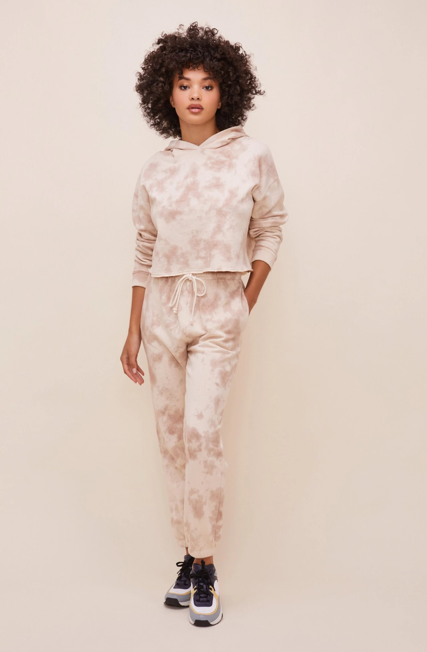 You’ll be on cloud nine in these cozy sweatpants. They feature a drawstring waist, dreamy tie dye print and tapered leg openings.