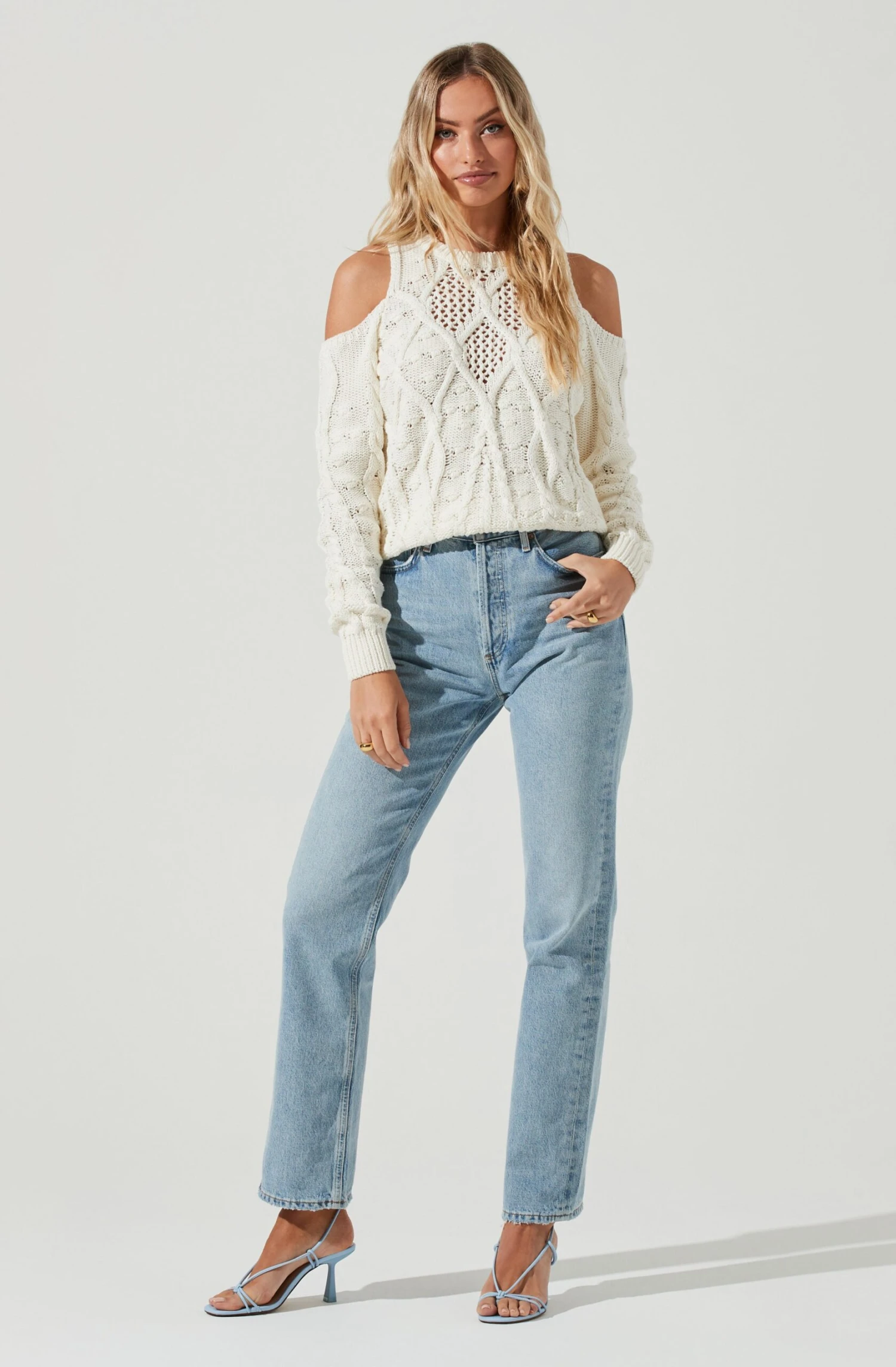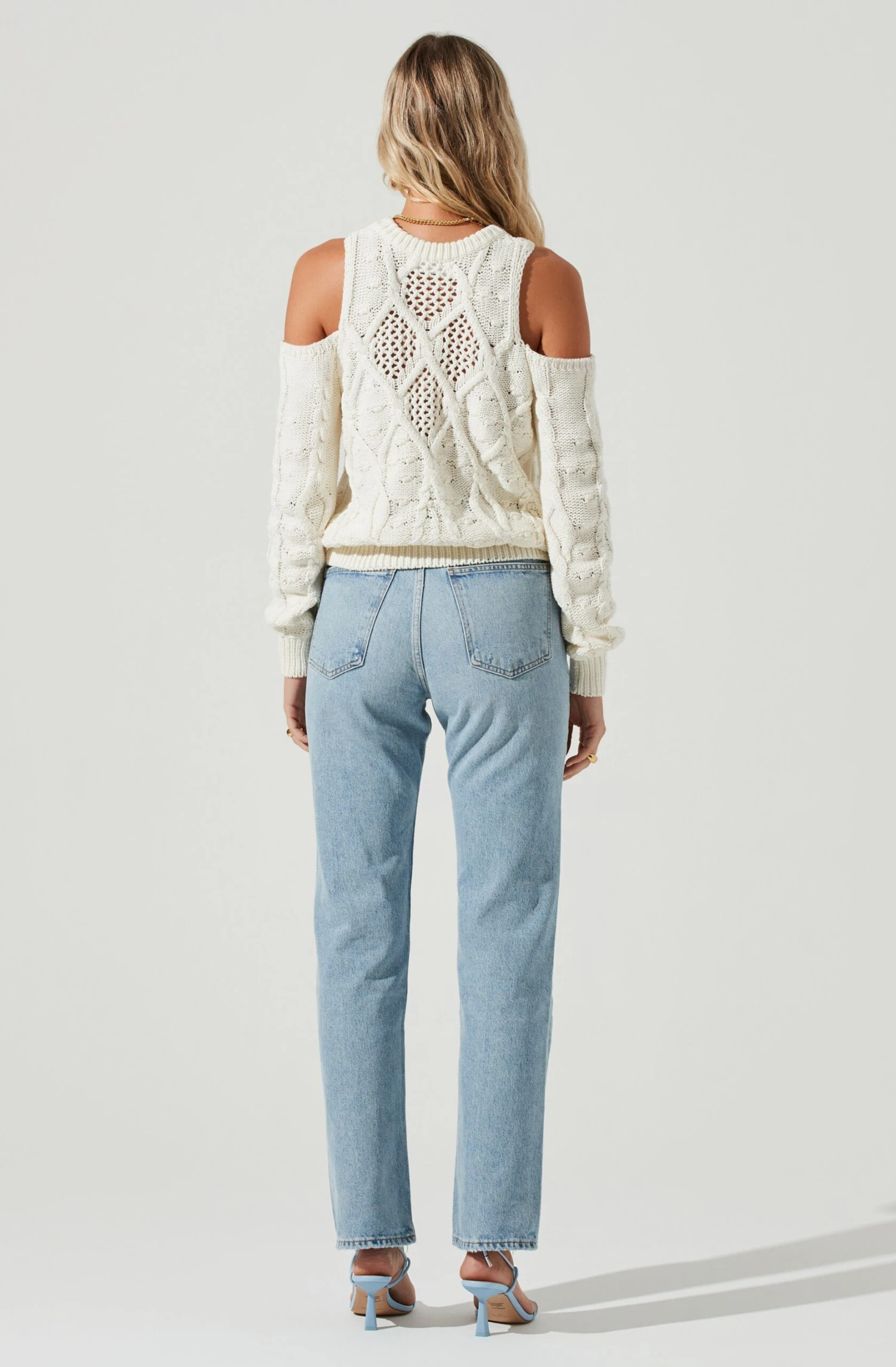 Mar Vista Cold Shoulder Cutout Cable Knit Sweater