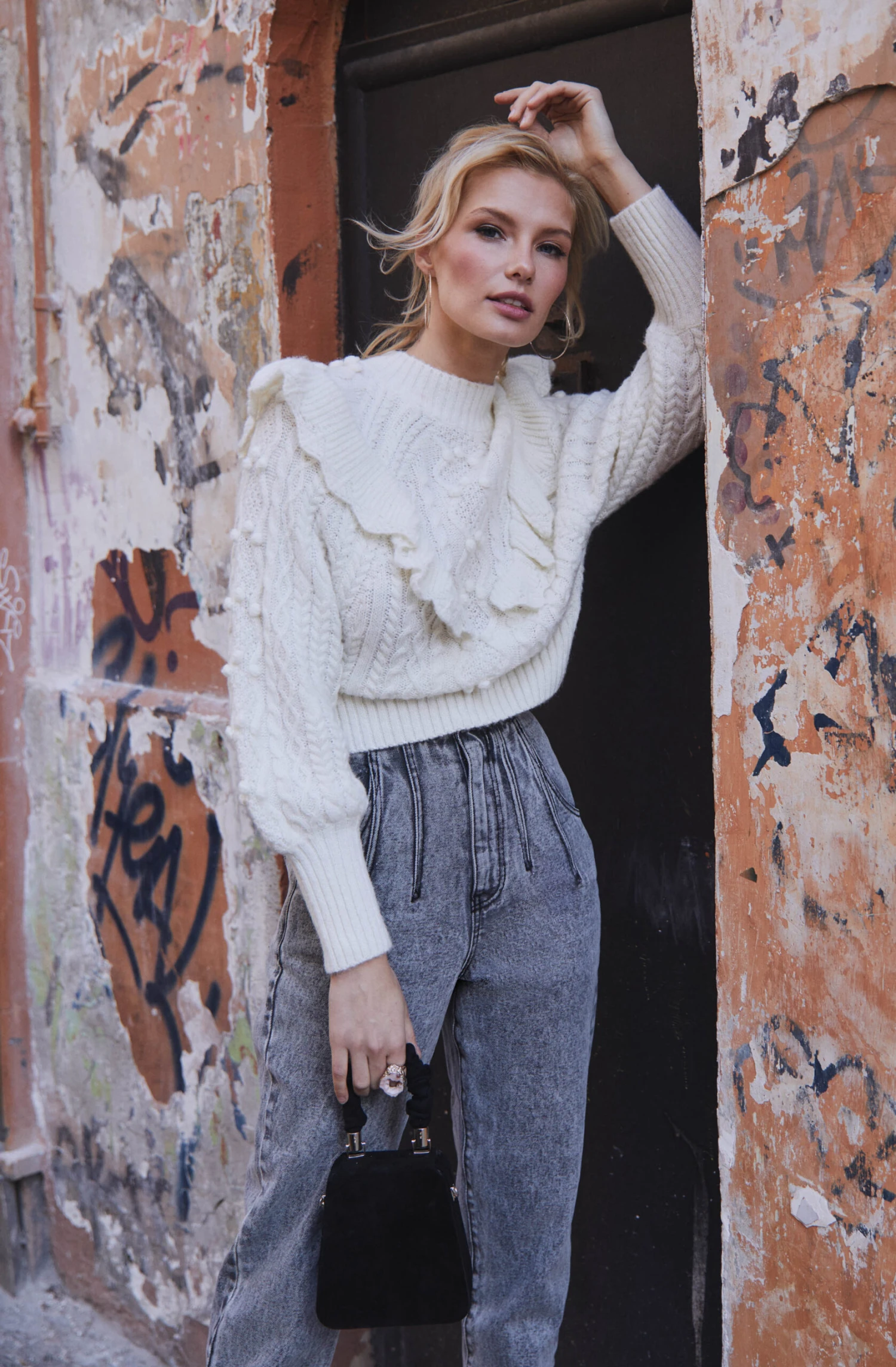 These are the jeans of your dreams! They feature a flattering high waist that leads to a pleated front and four pocket construction. Slim leg silhouette.