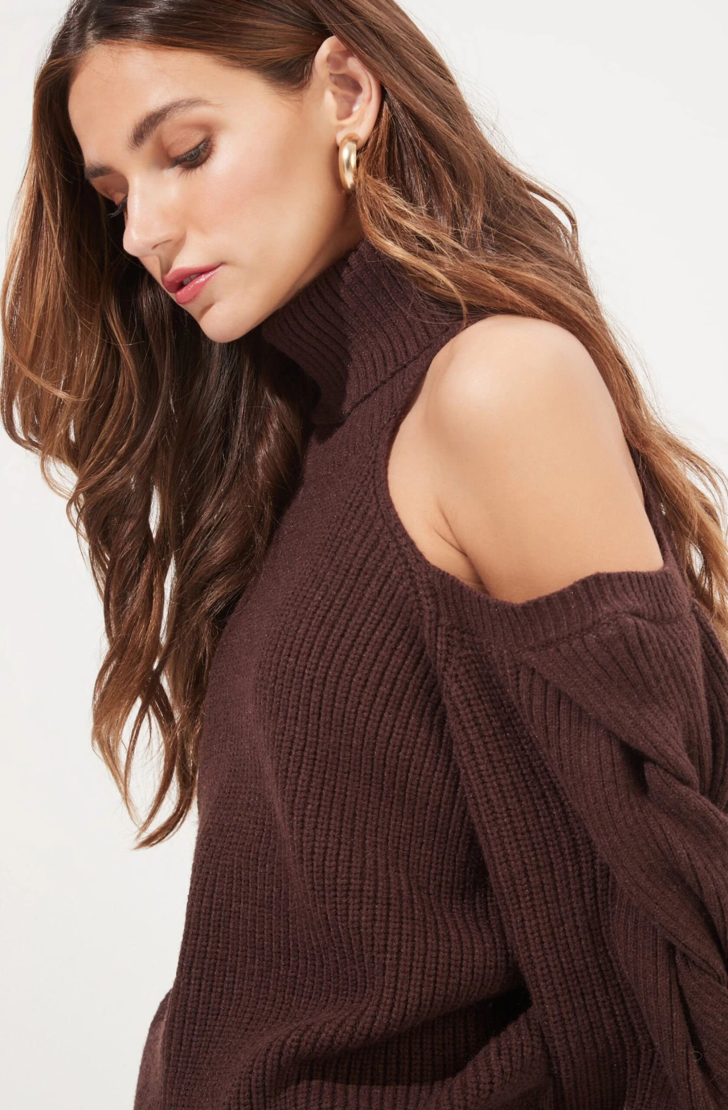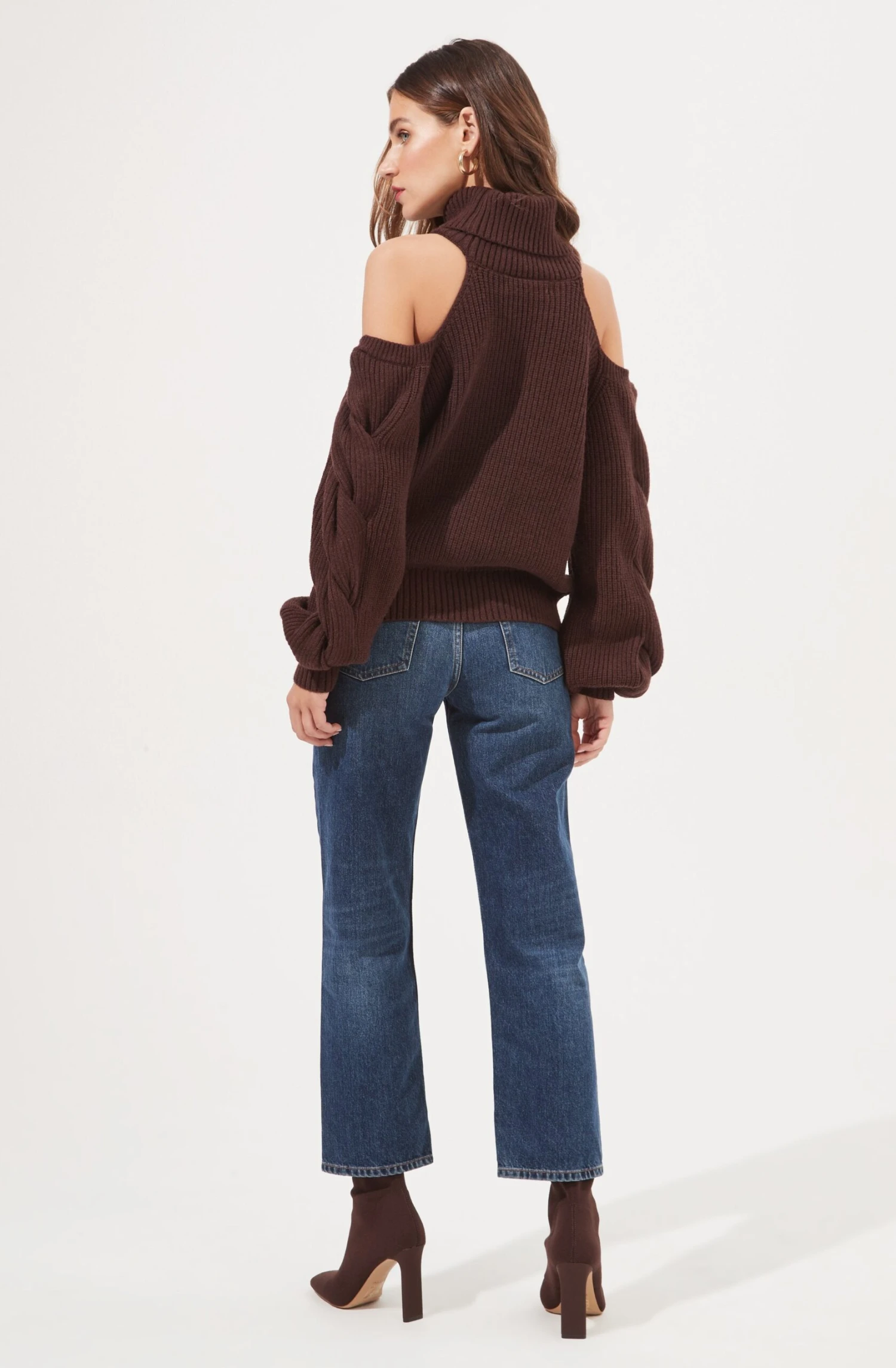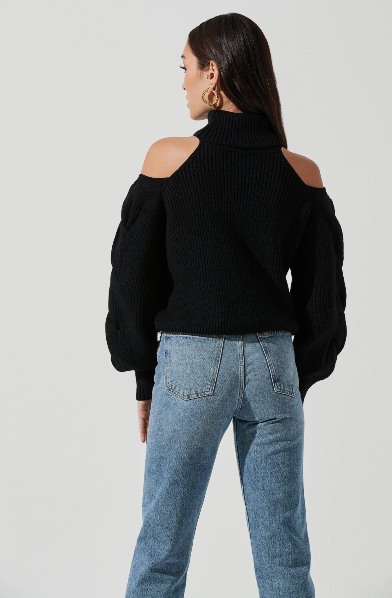 Rhoswen Cold Shoulder Cutout Turtleneck Sweater