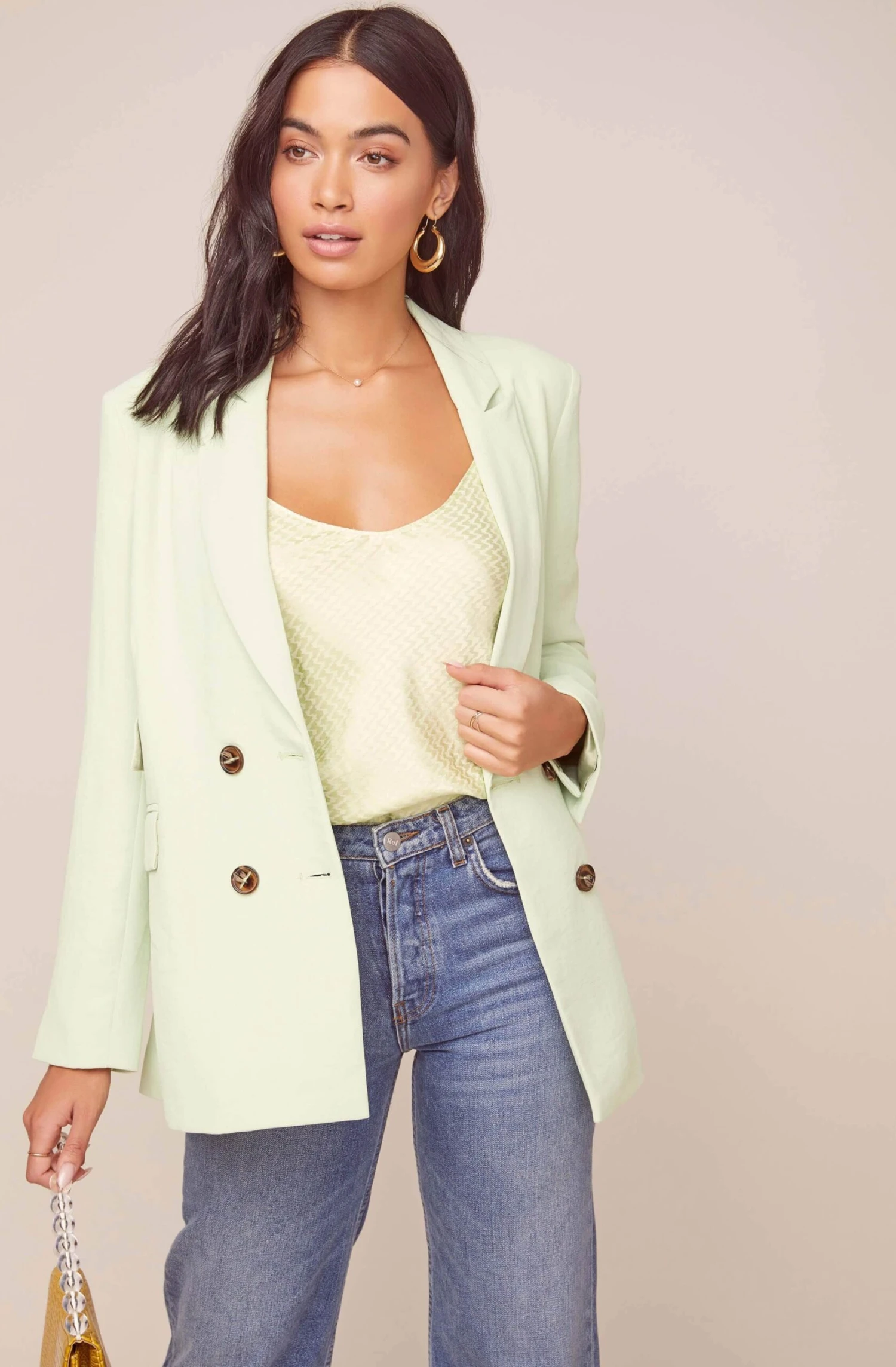 The stars align in the Zodiac Blazer. It features a notched lapel that descends to a double breasted front and patch pocket accents. Oversized fit and long sleeves.